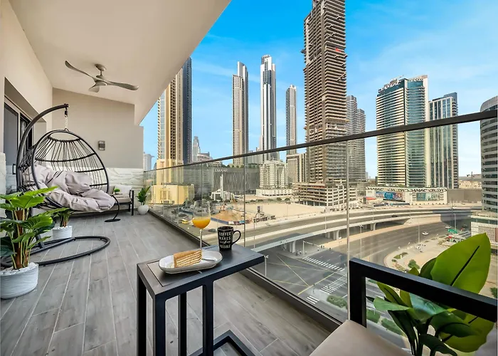 Das 1-Zimmer-Apartment Chic 2Br Near Dubai Mall & Burj L Canal & City View I 5 Pax liegt 3 km von einem Naturparadies wie dem Safa-Park und bietet ein Restaurant. Diese 76 m² großen Apartments bietet eine Terrasse mit Blick auf den Pool.